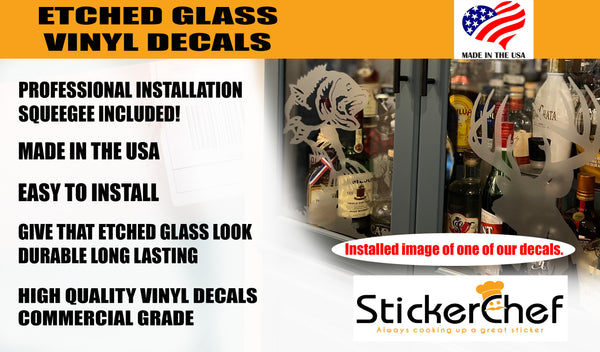 Transform your windows with StickerChef's Etched Glass Vinyl Decals. These stunning window stickers mimic the elegant look of etched glass while ensuring easy installation and removal. Crafted from high-quality air-release vinyl, they offer the durability of commercial-grade film.